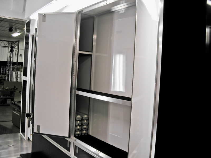 Note: Many of the storage cabinet options shown are also available on our smaller trailers. We welcome your personalized storage ideas and can custom build most anything you desire. |